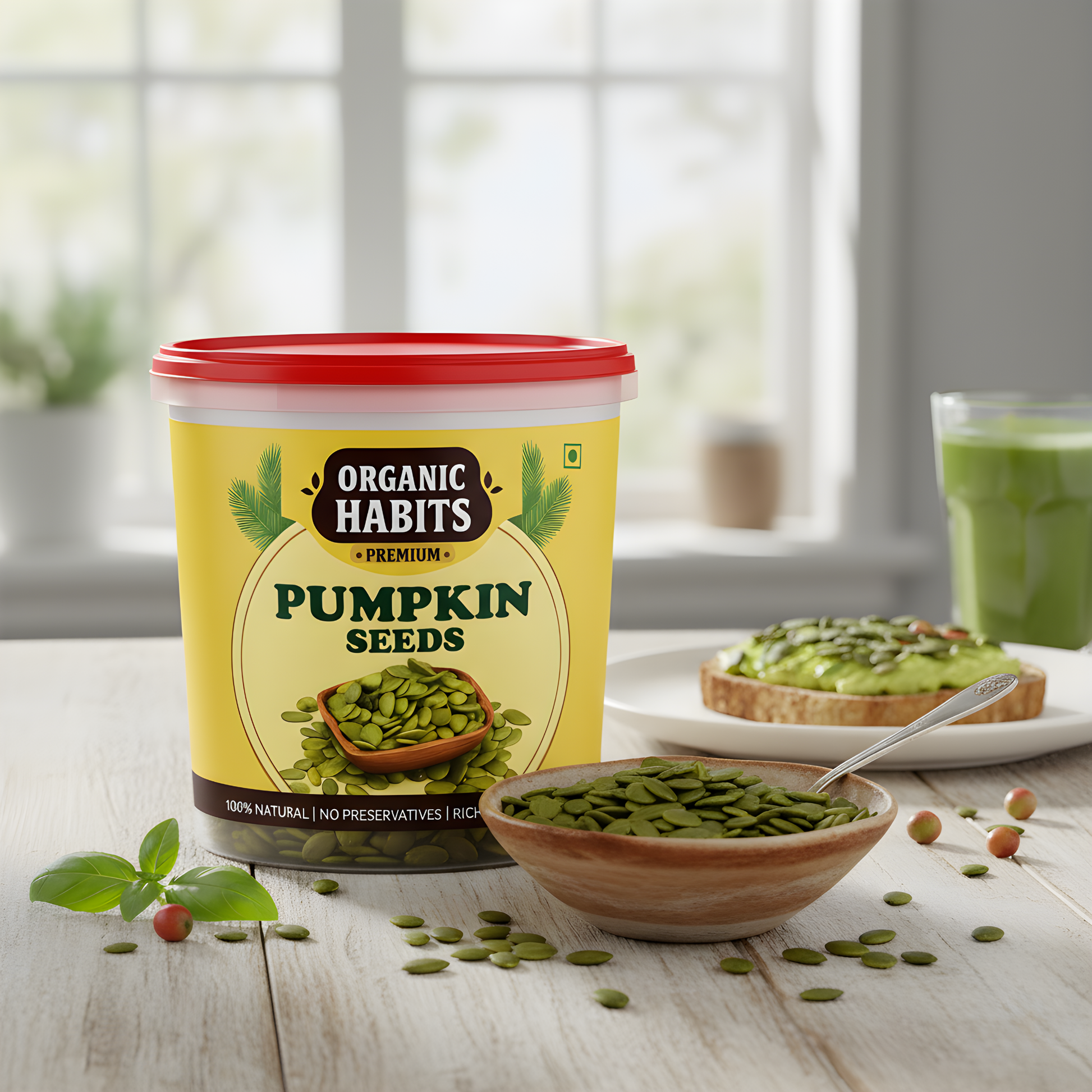 Make Organic Habits Premium Pumpkin Seeds your daily snack companion and fuel your body with natural plant-based nutrition. Wholesome, clean, and nutrient-rich, this is wellness made simple.